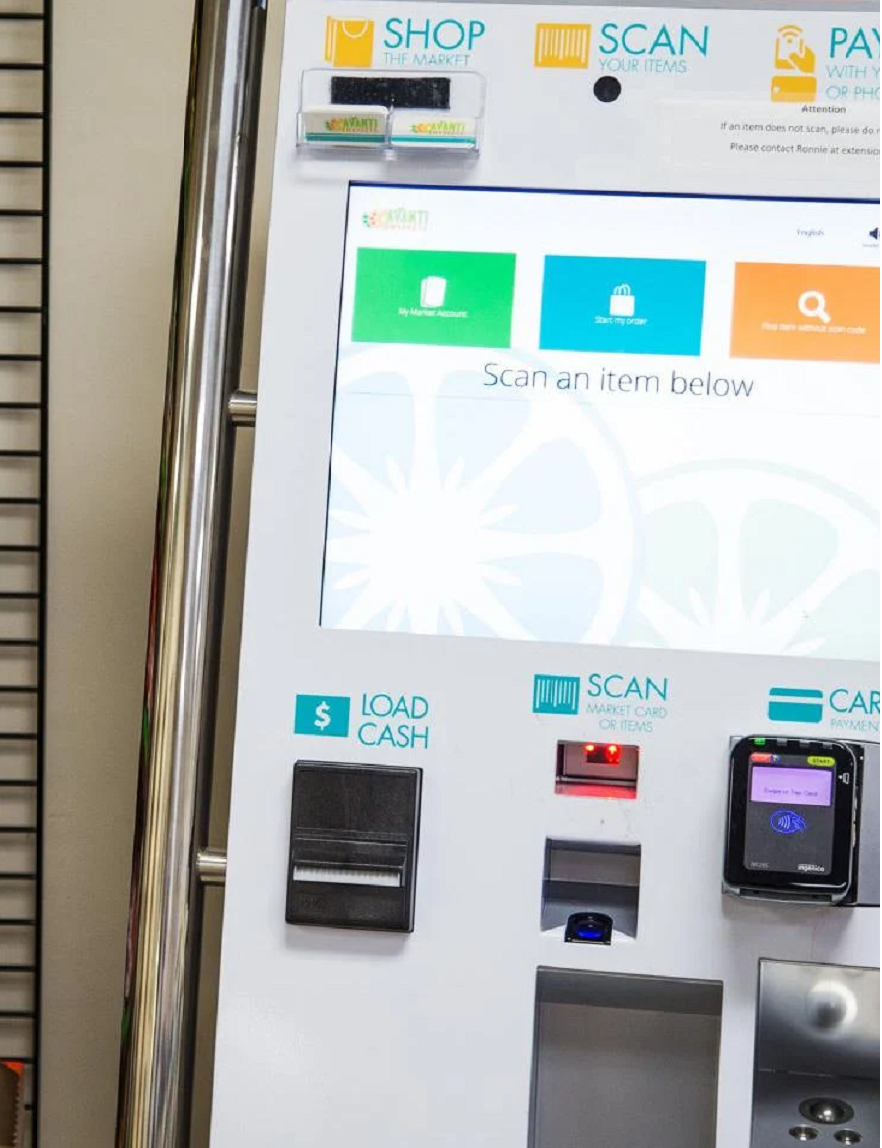 A mirco market application that offers a software platform to independent operators that provides self-checkout kiosks in a micro-market setting. Customers use the kiosk or phone app to purchase food and beverages using a physical or virtual scan codes in an unattended micro-market, placed in corporate breakrooms.